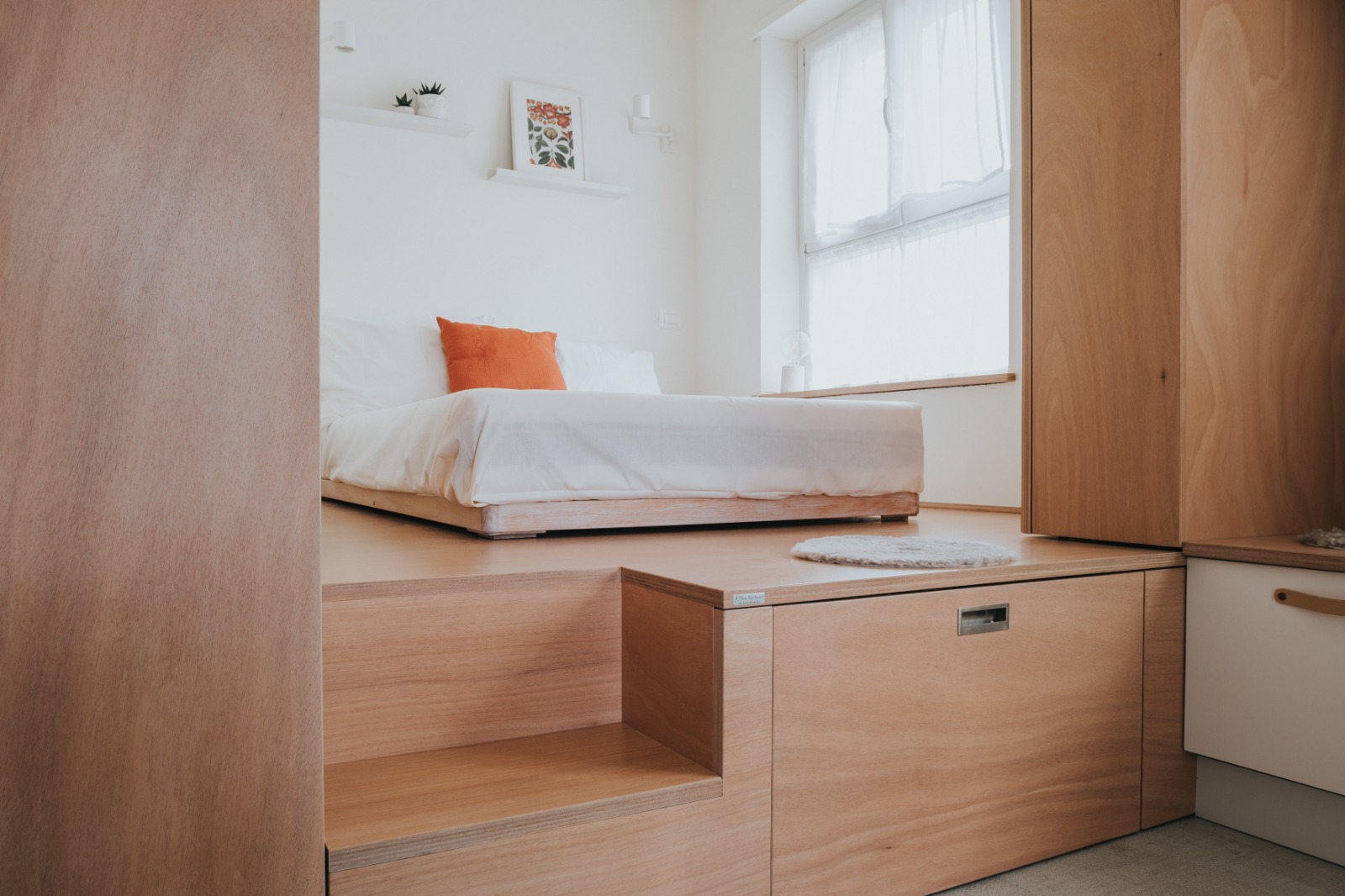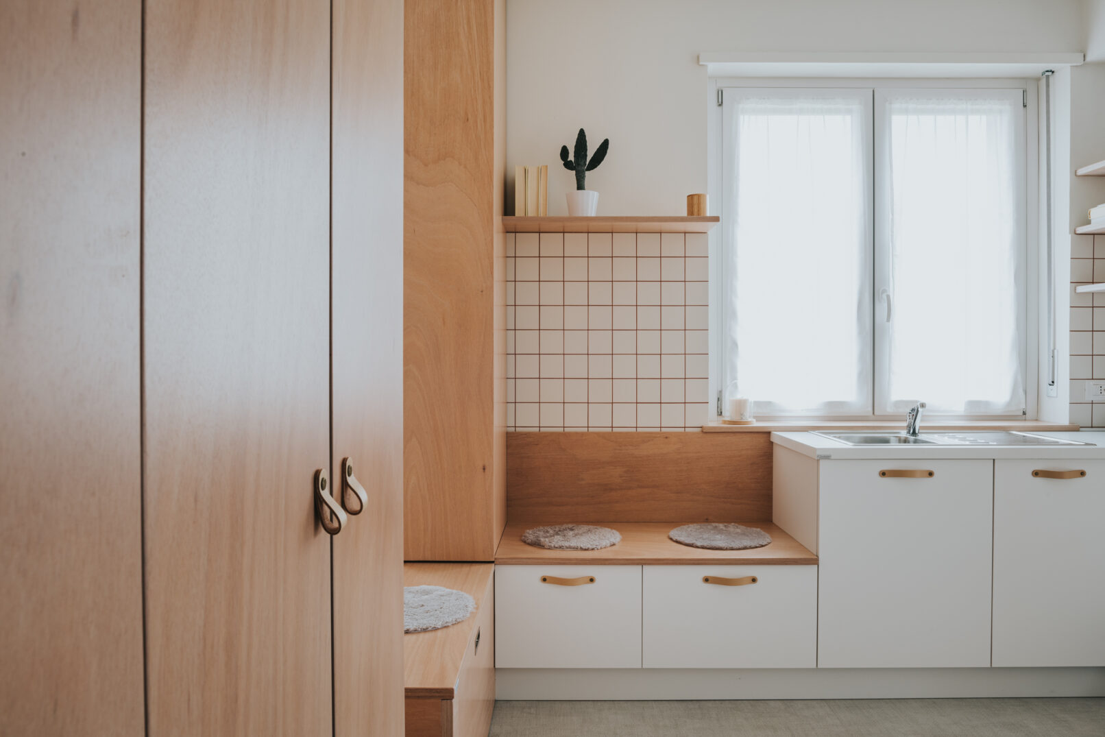 Nonostante il budget limitato, tutto l’arredo è stato fatto prettamente su misura, in modo da sfruttare al meglio la piccola metratura.