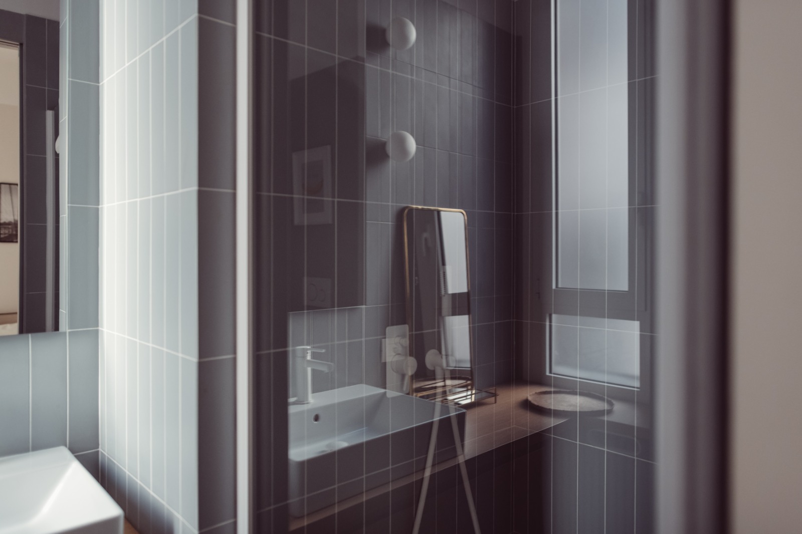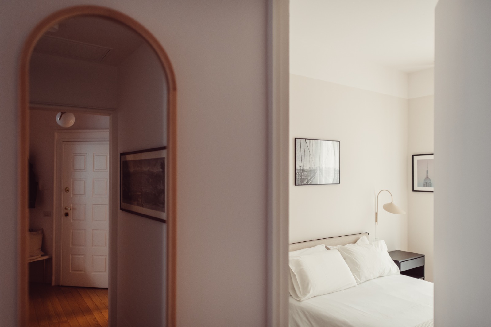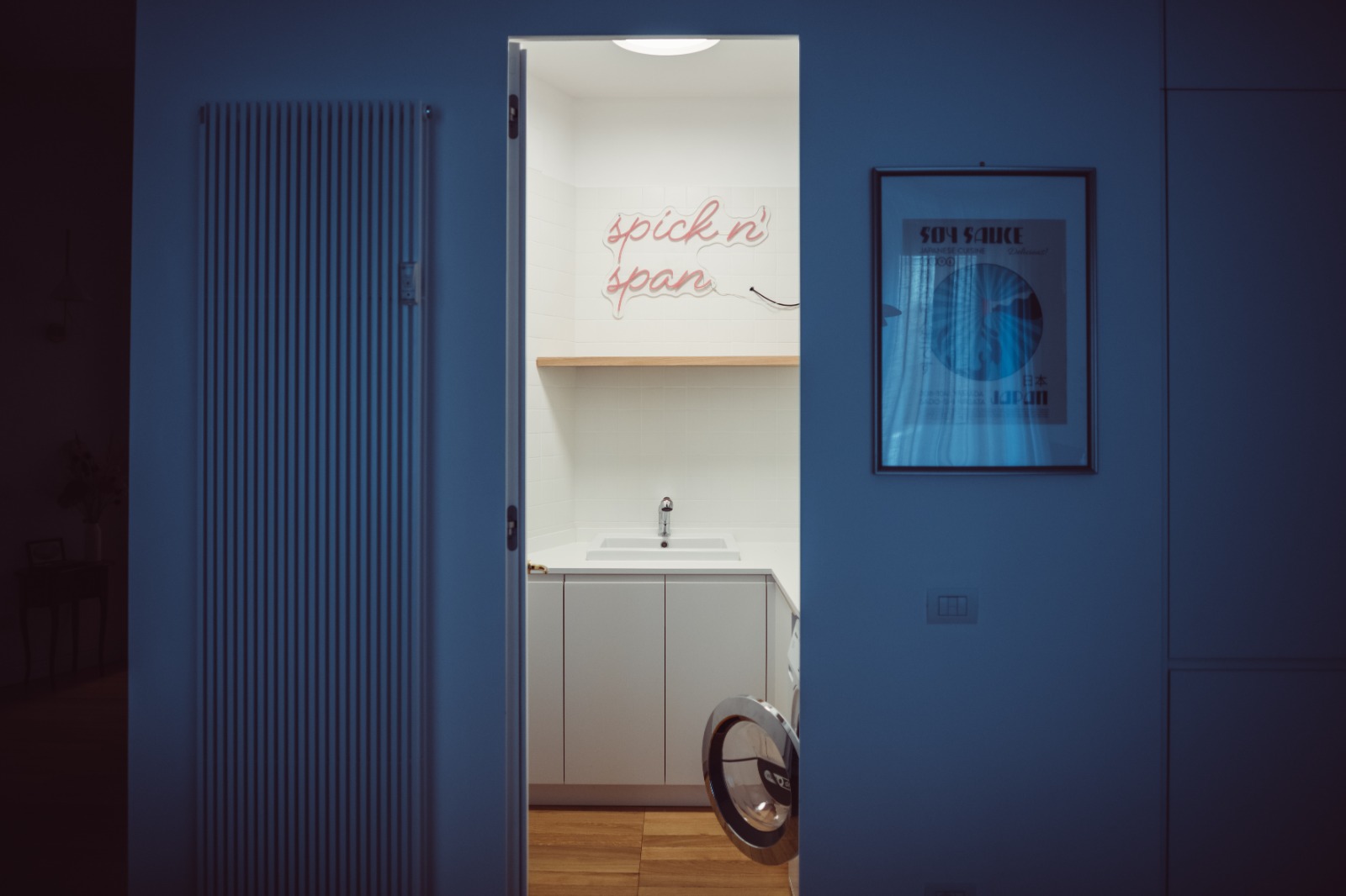 L’appartamento viene ripensato in chiave funzionale, andando ad aggiungere una lavanderia ed un bagno en suite con cabina armadio, andando a posizionare, quest’ultima, nella parte più silenziosa della casa: l’interno cortile.