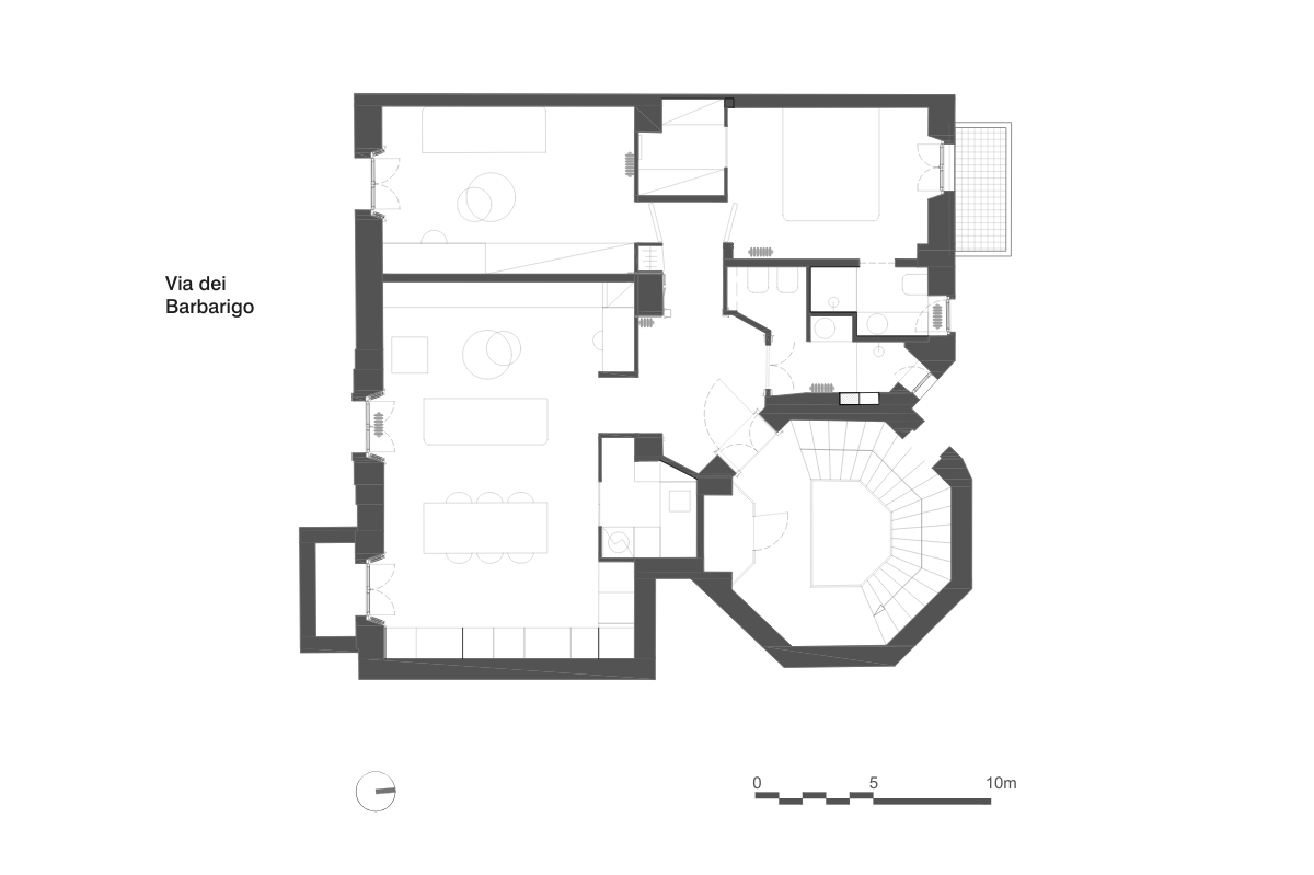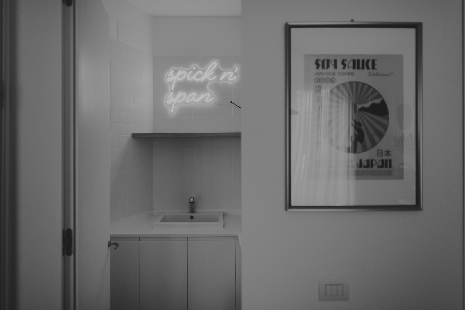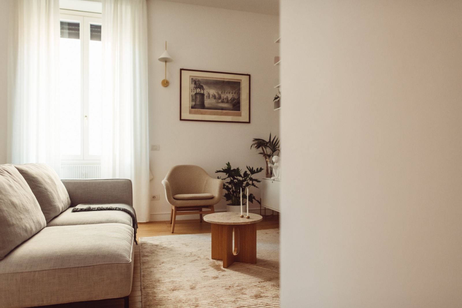 L’appartamento viene ripensato in chiave funzionale, andando ad aggiungere una lavanderia ed un bagno en suite con cabina armadio, andando a posizionare, quest’ultima, nella parte più silenziosa della casa: l’interno cortile.